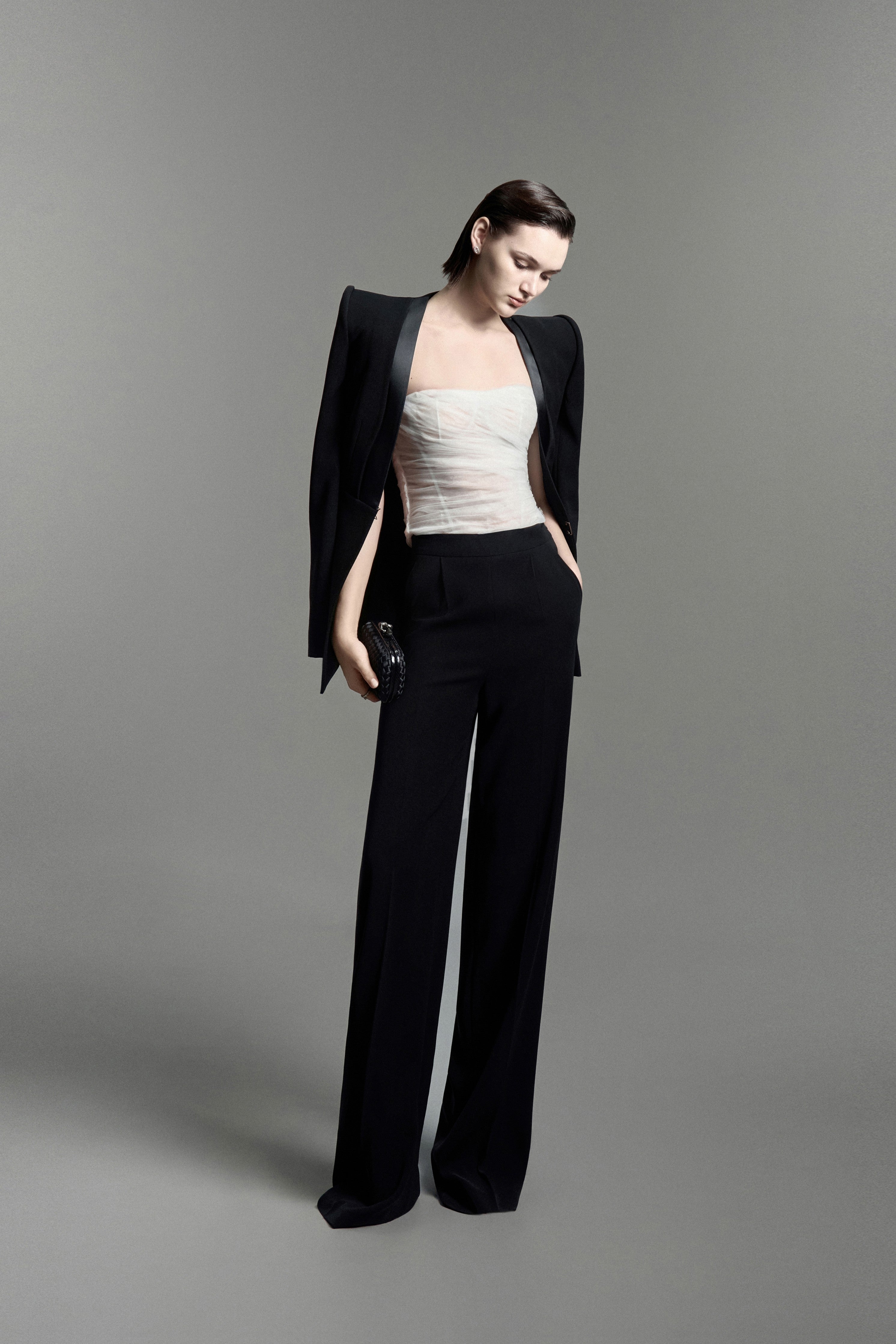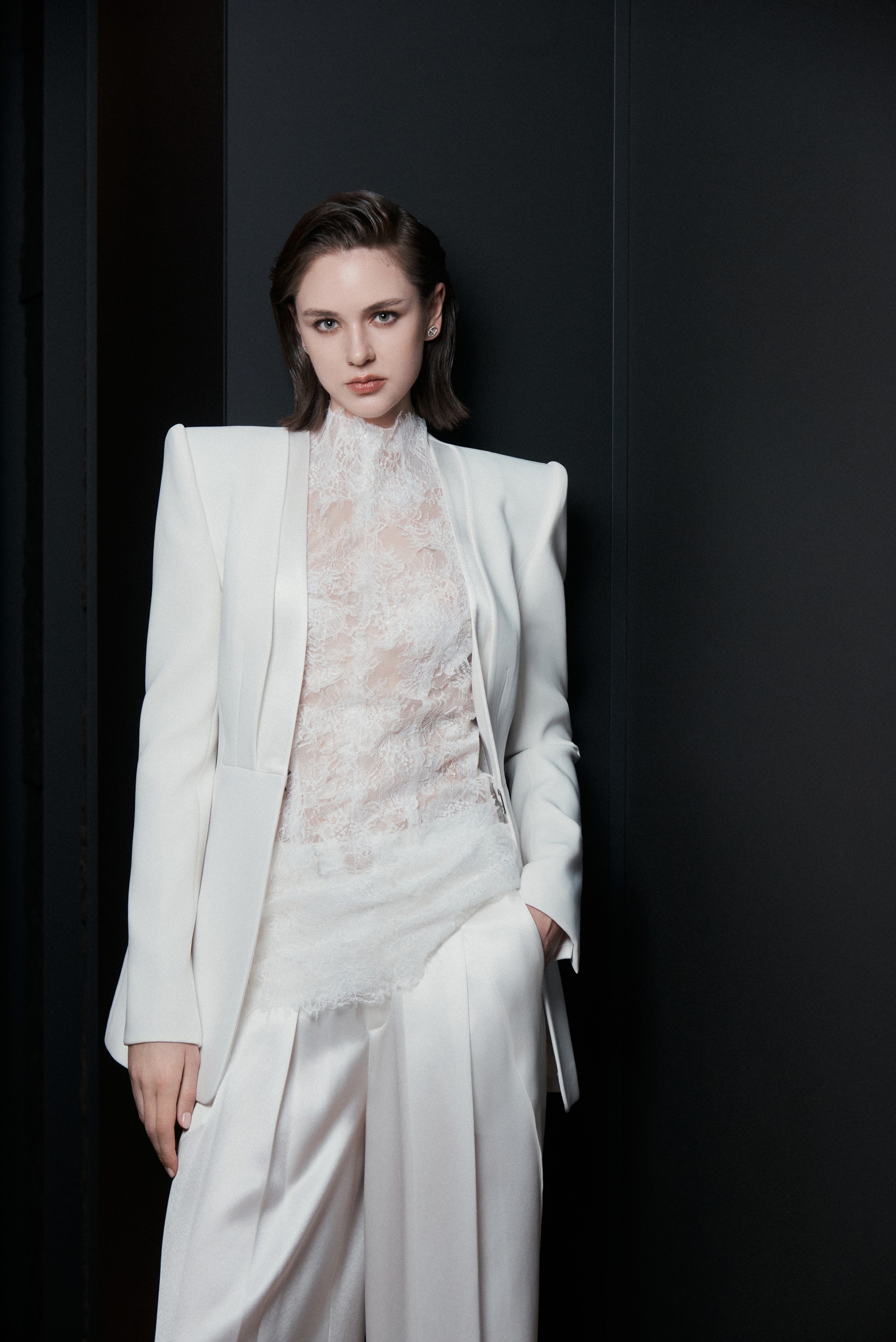 This is how LEKIEU speaks of confidence in a restrained, composed tone, where florals do not seek attention but exist as a subtle visual language, controlled and intentional.Structure is treated with precision and restraint, expressed through tailored silhouettes that define the modern woman: calm, assured, and fully aware of her own presence.Set against fluid, softly reflective satin, understated floral motifs reveal themselves only through light and movement, creating an inner allure, quiet, refined, and enduring.