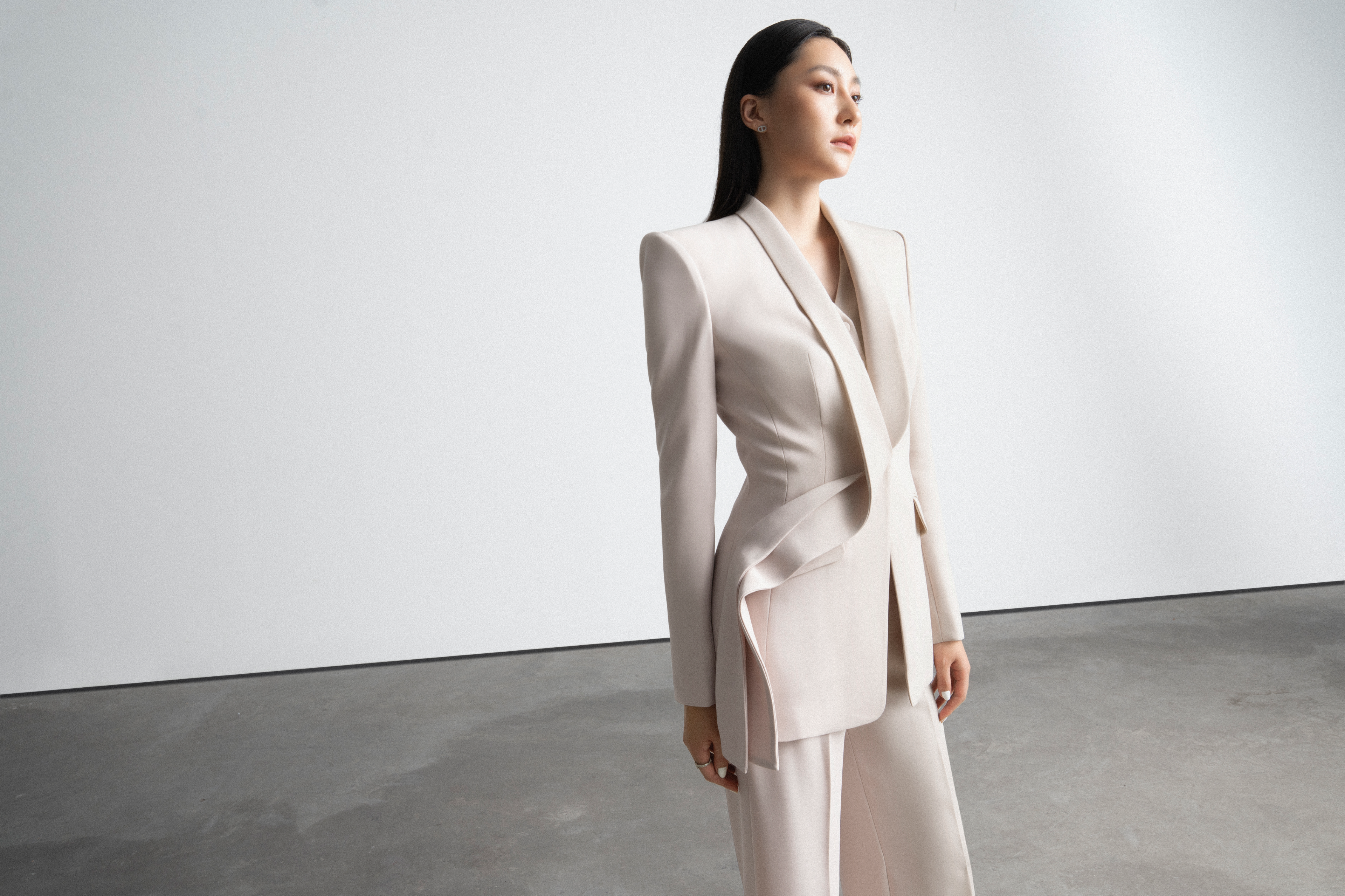 Marking a turning point and bringing connection from LEKIEU's bold designs: simplicity, elegance, luxury. The Fall 2023 collection revolves around highly applicable, neat and sophisticated designs expressed in the brand's signature front body pleats and shoulder bridge.