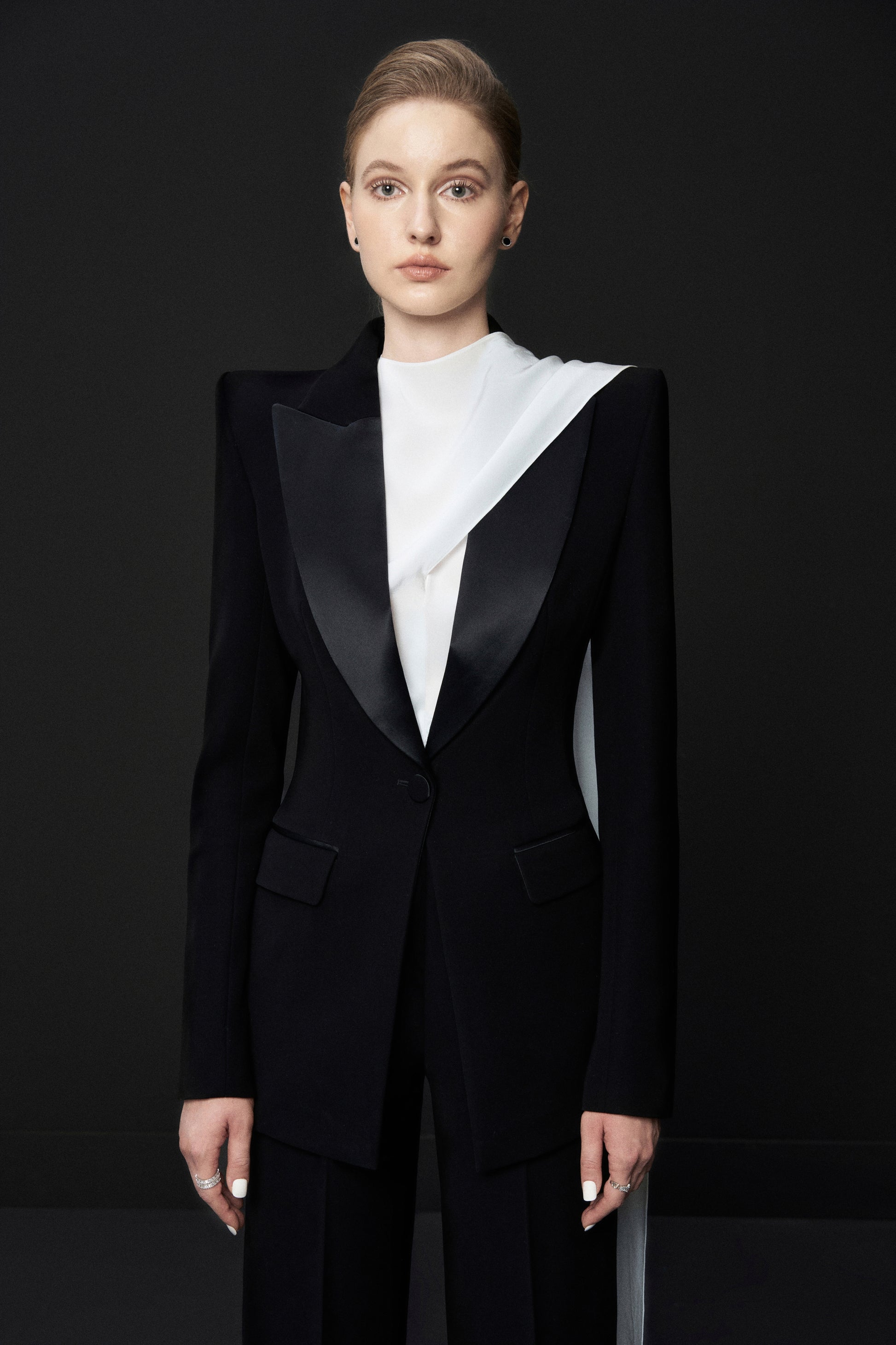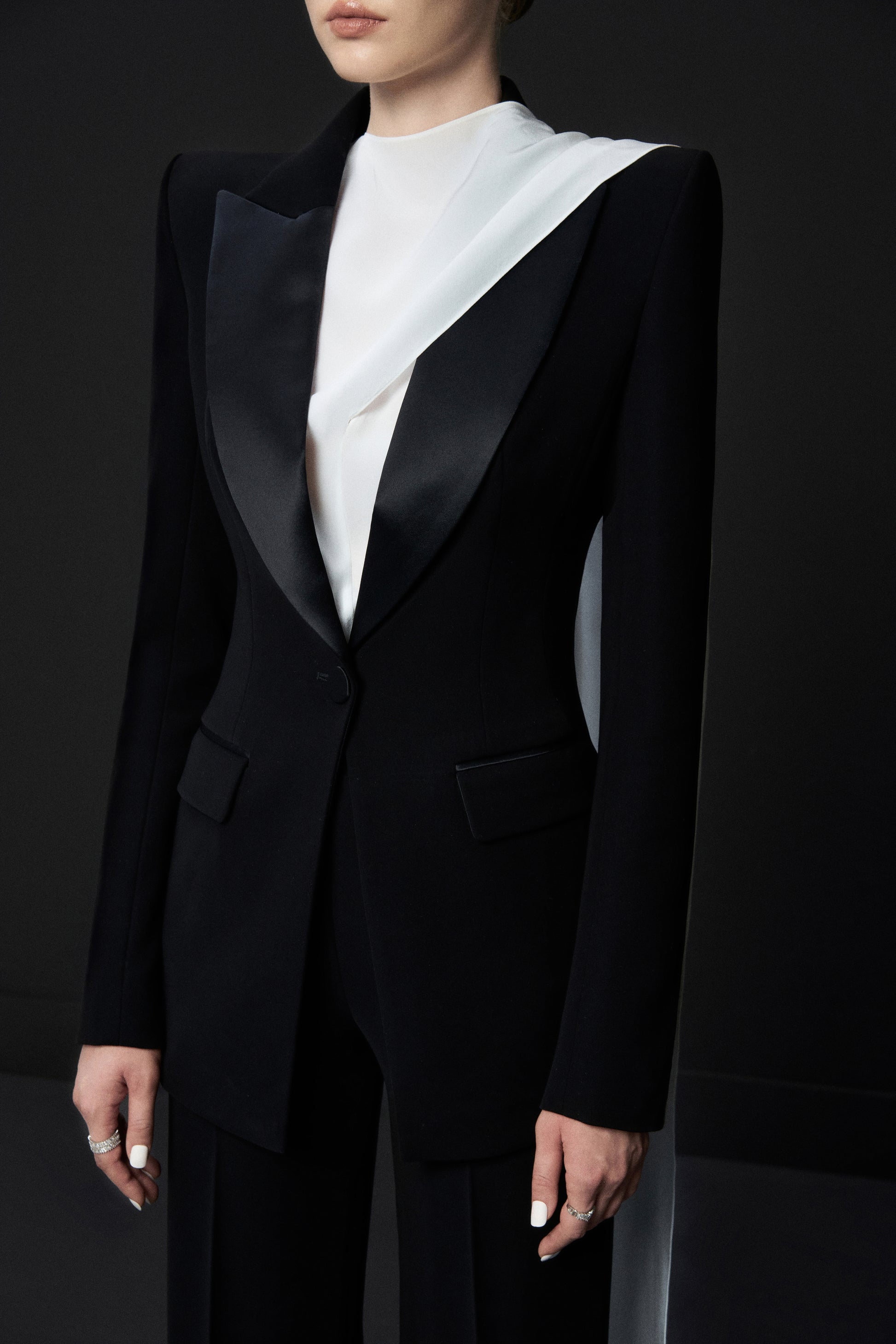 This will be a must-have item in the wardrobe of the wearer who is passionate about menswear style. A clever combination of materials created a mixed satin silk peak lapel design, making the costume even more delicate and fancy.