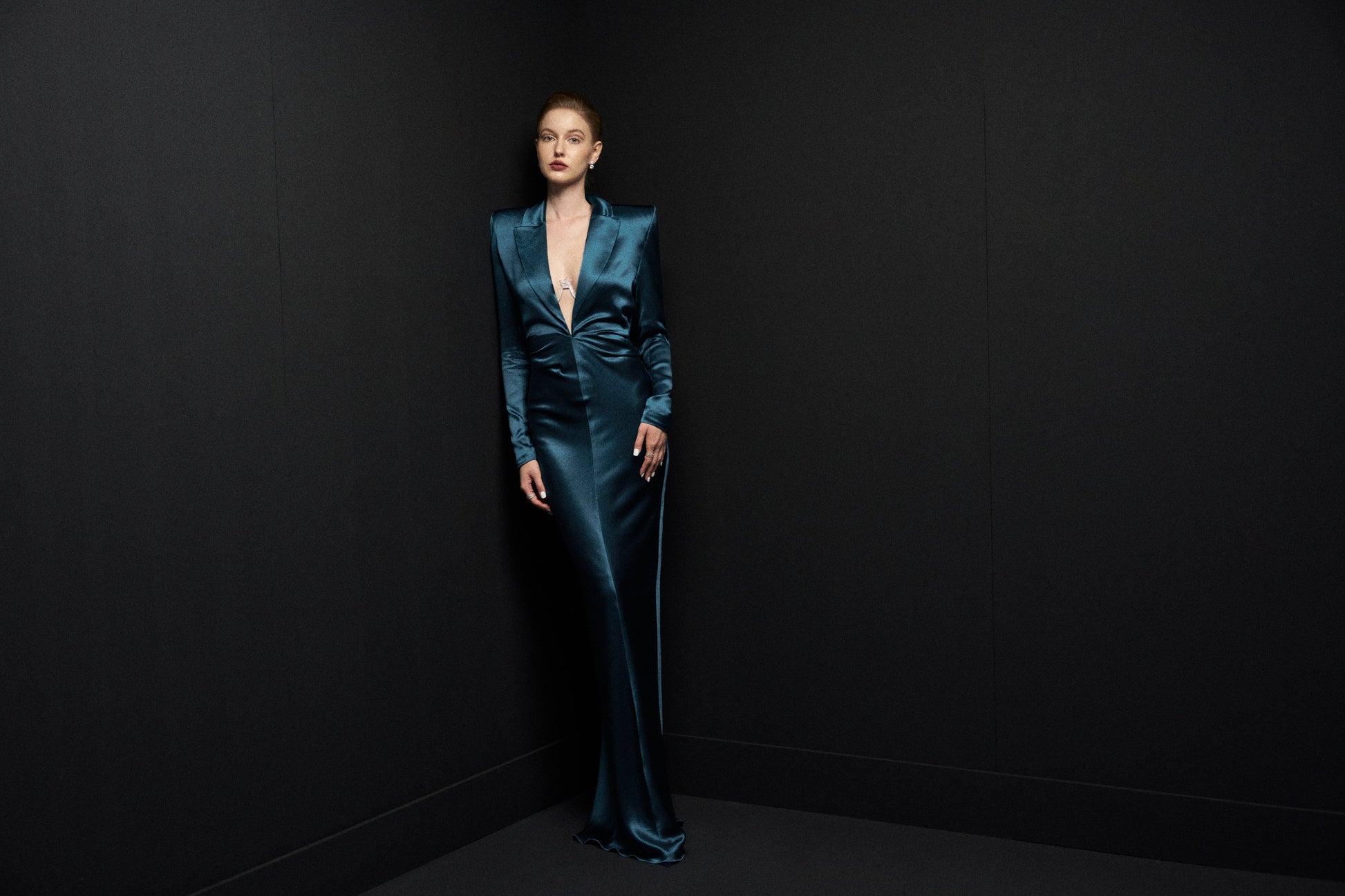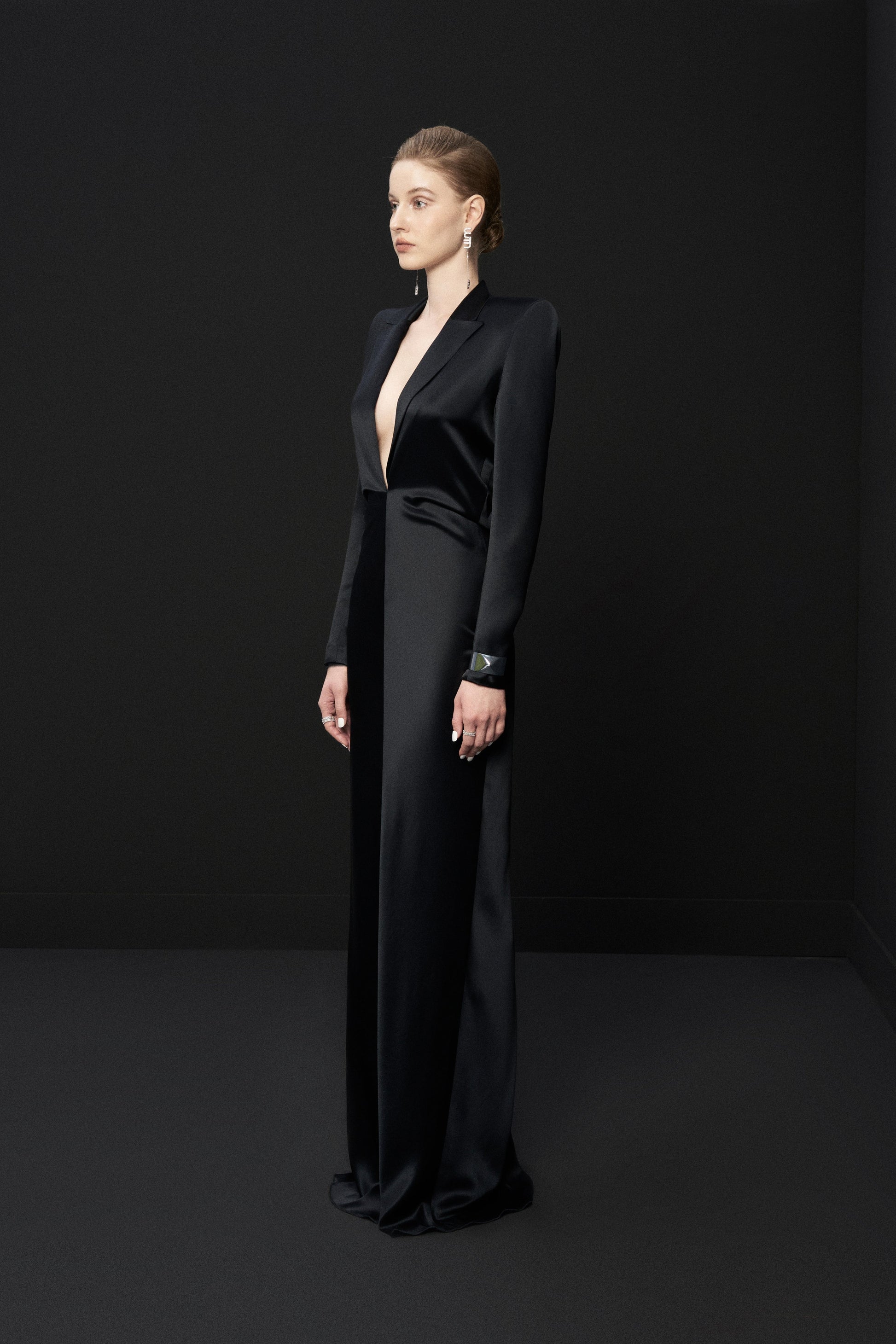 - Deep V-neck