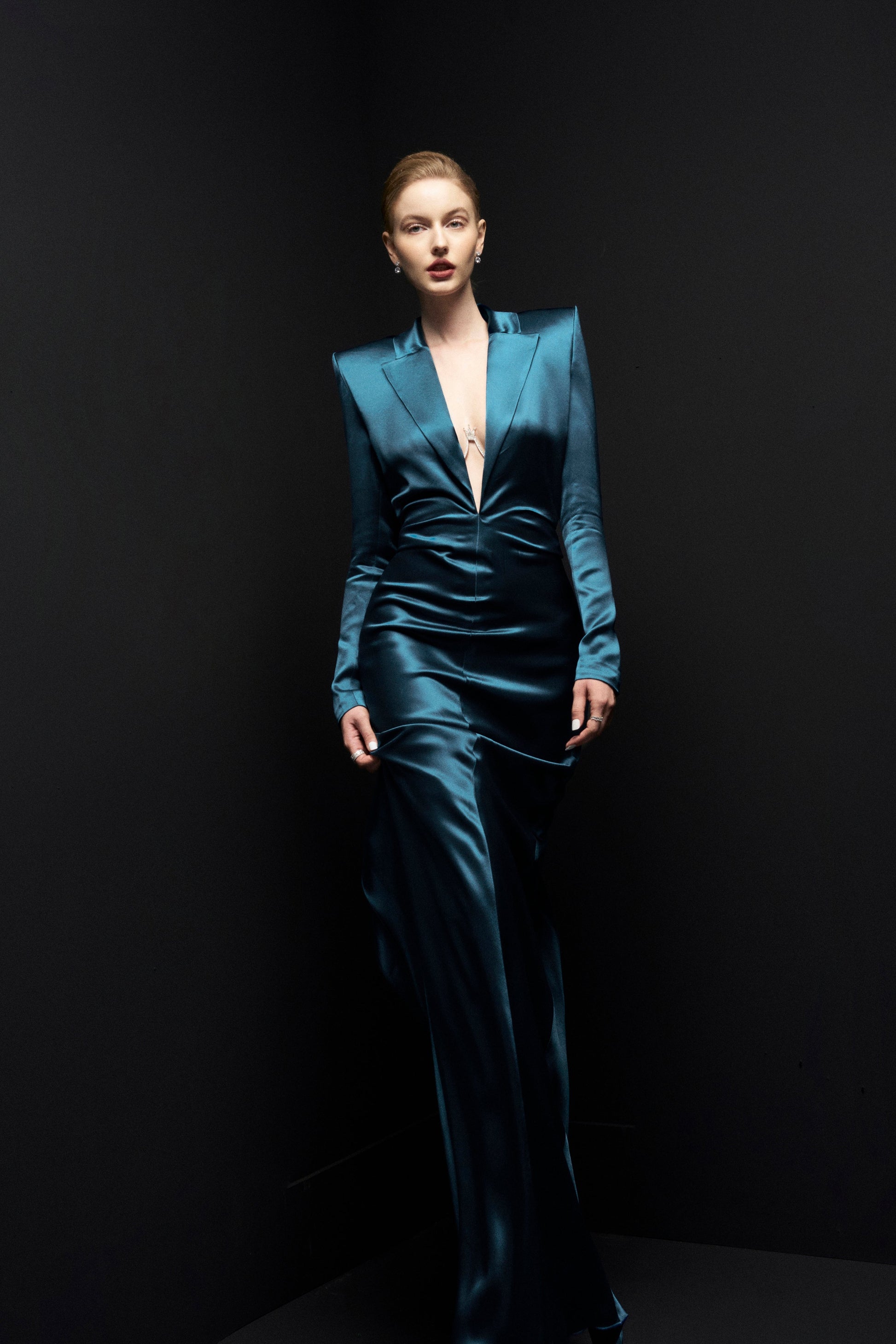 The dress is extremely elegant and nobility with a novelty blazer style that brings innovation to the modern style dress. Carefully selected satin silk material helped to enhance the fanciness of the costume while still exuding the wearer's feminity.