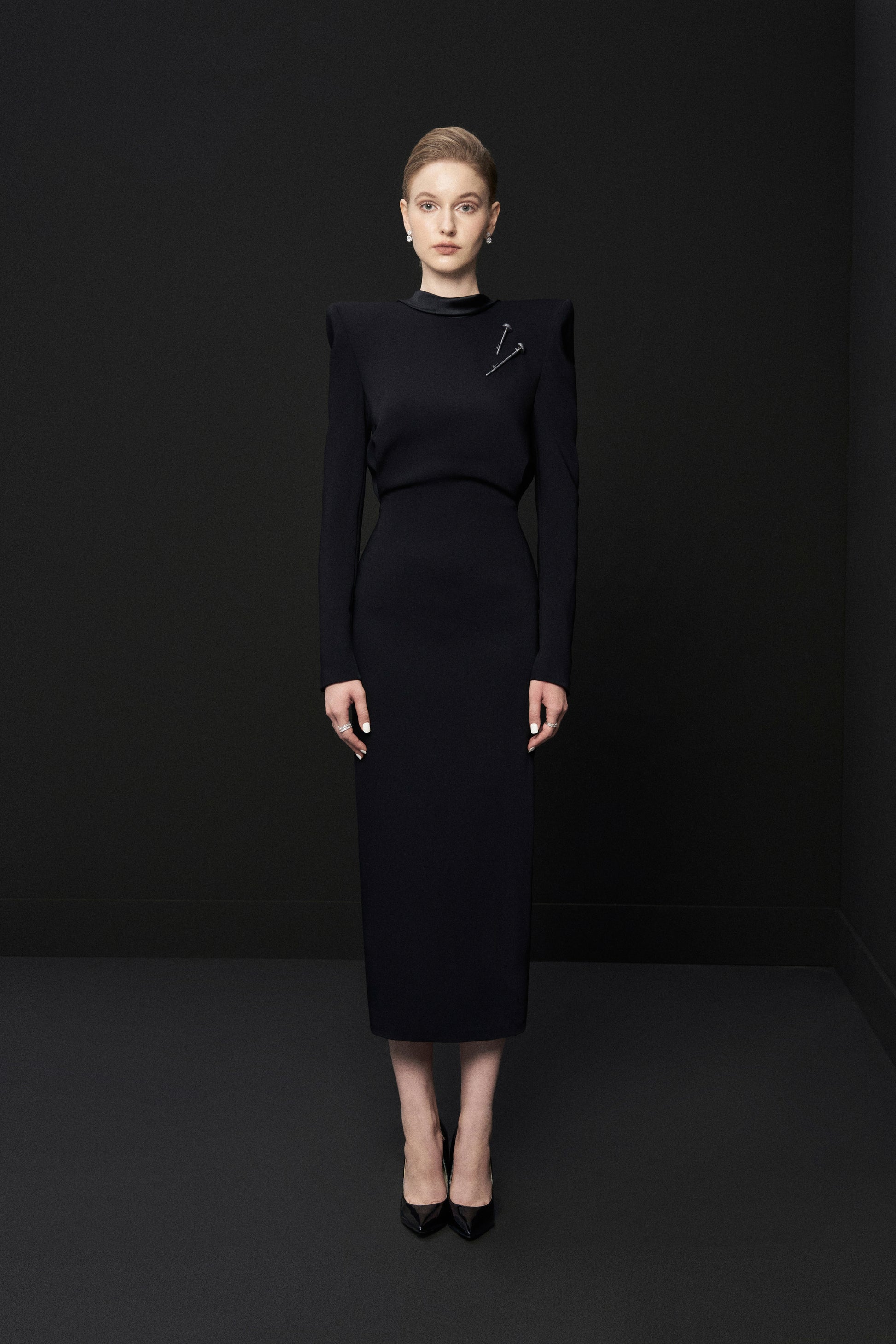 Elegant and nobility with a padded wide shoulder design, the dress is a great choice for modern ladies who is passionate about mature beauty. A discreet yet fancy design will be fitted on every occasion.