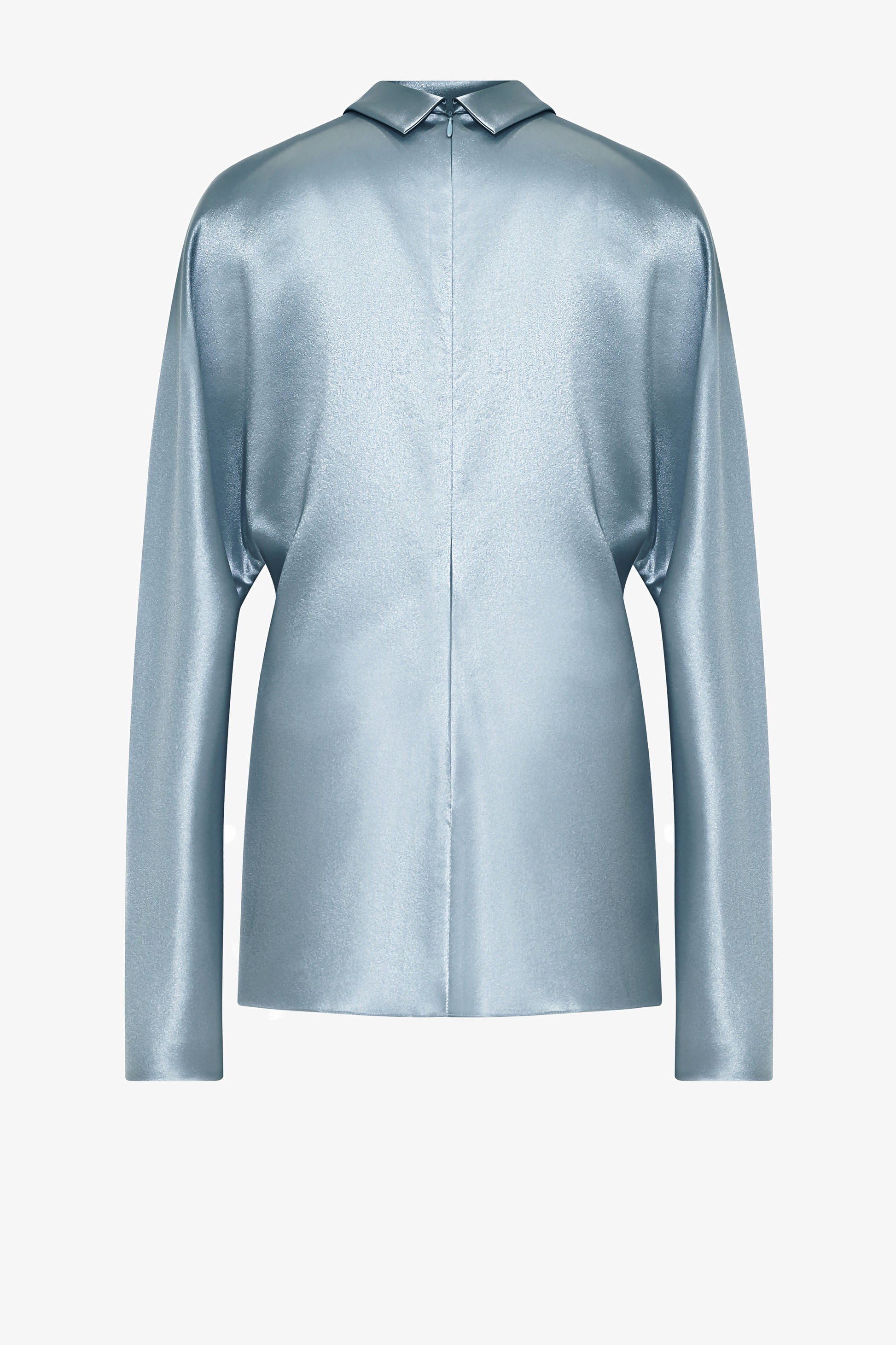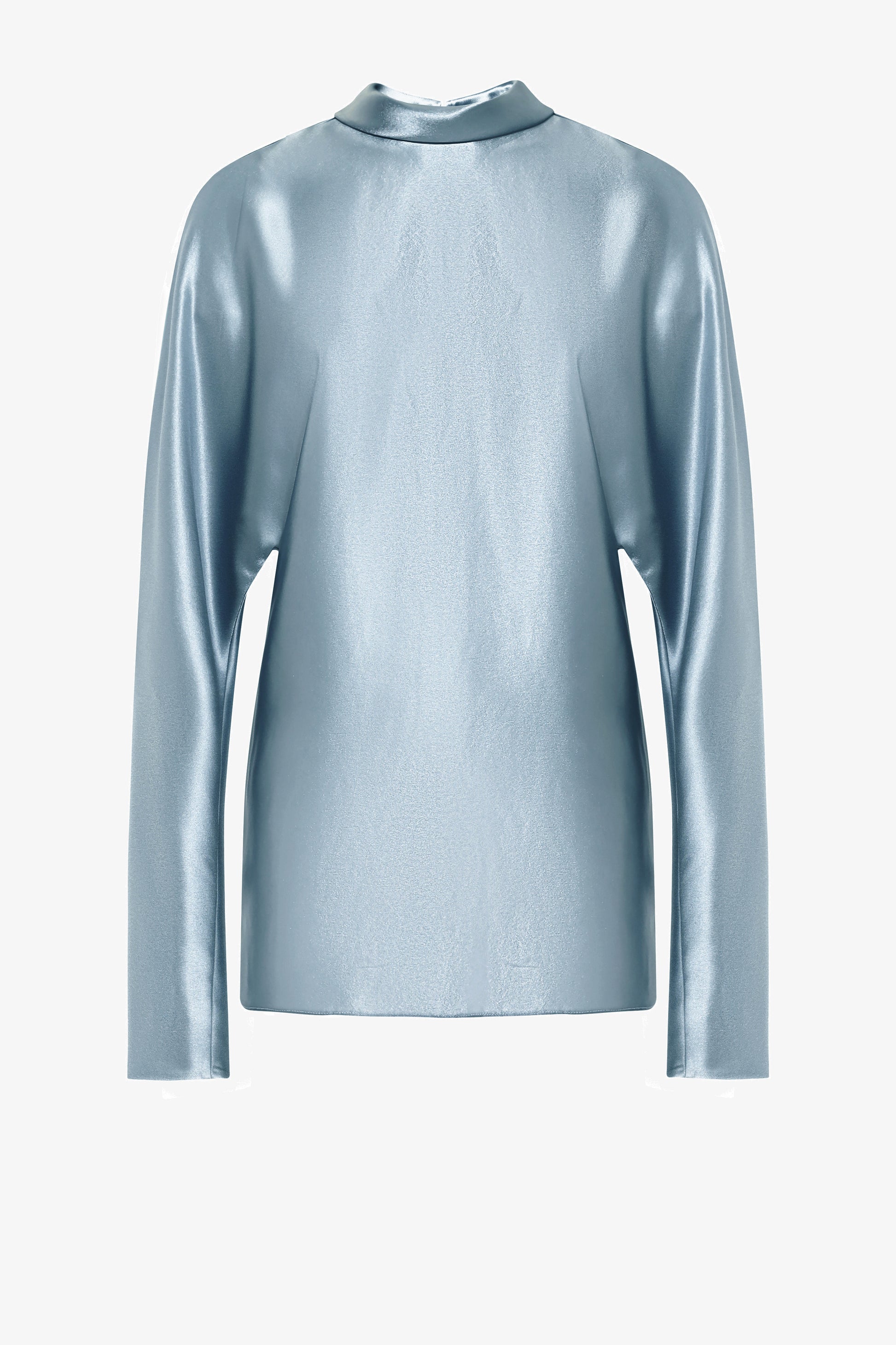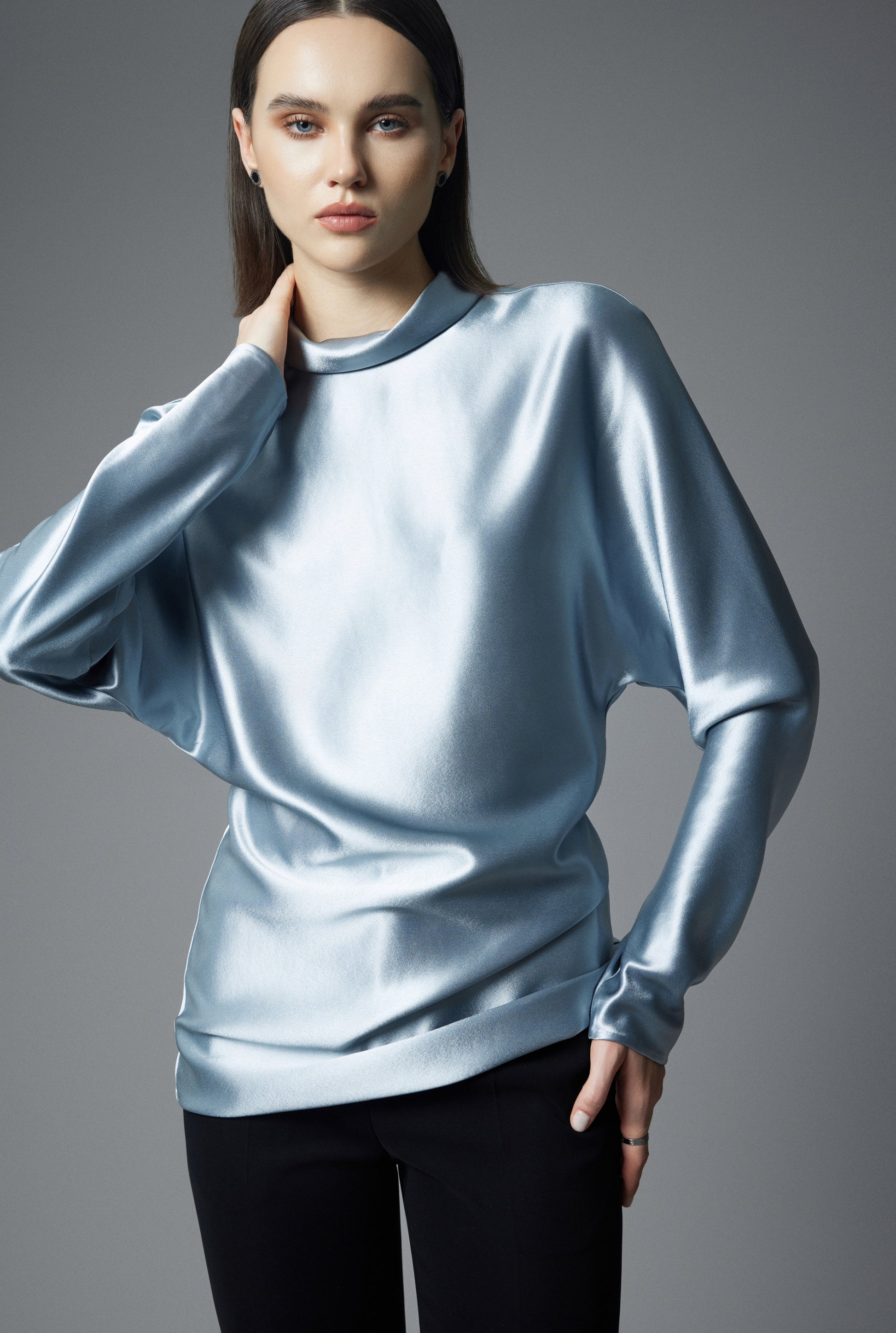Blouse with a gathered upper body seamlessly connected to the lower part for a body-hugging fit. Long sleeves with integrated shoulder detail. A draped, funnel neck collar. Straight-leg trousers with a tapered 21cm leg opening, featuring two diagonal front pockets and two back welt pockets.