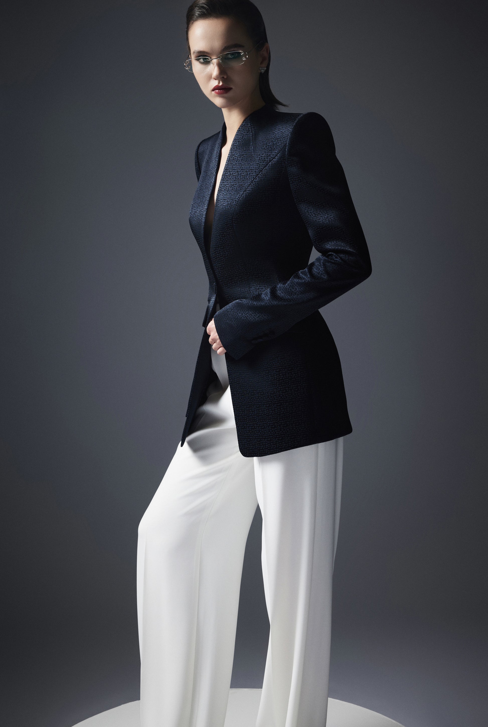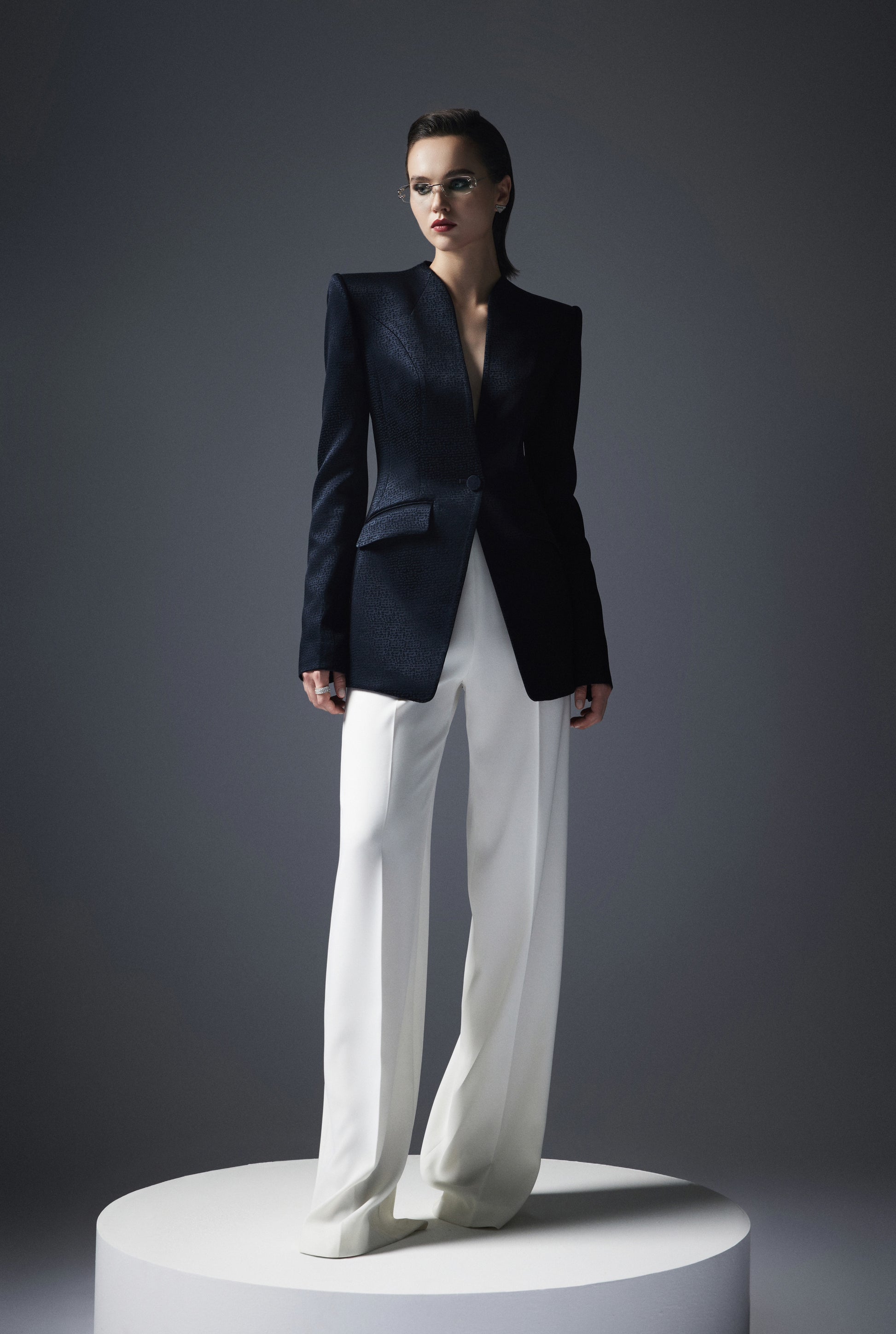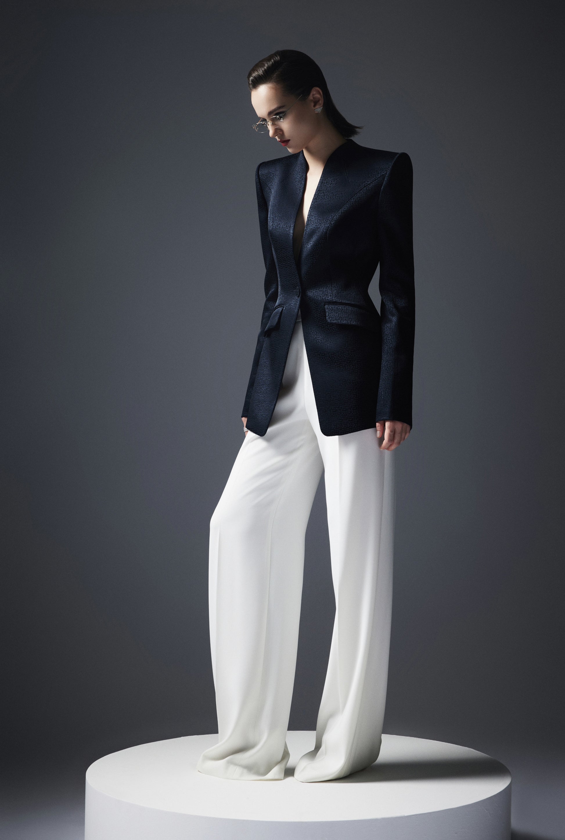 Wide-leg trousers with front crease. 2 rear welt pockets. The leg opening width measures 29cm and reaches the shoe. Invisile zipper at the left side seam.