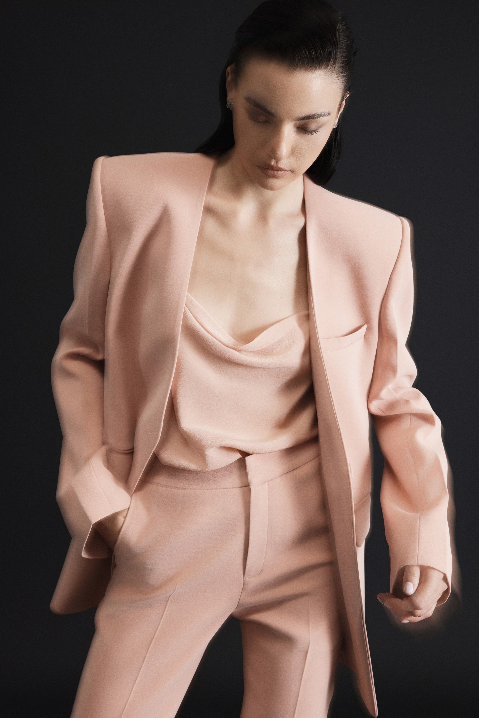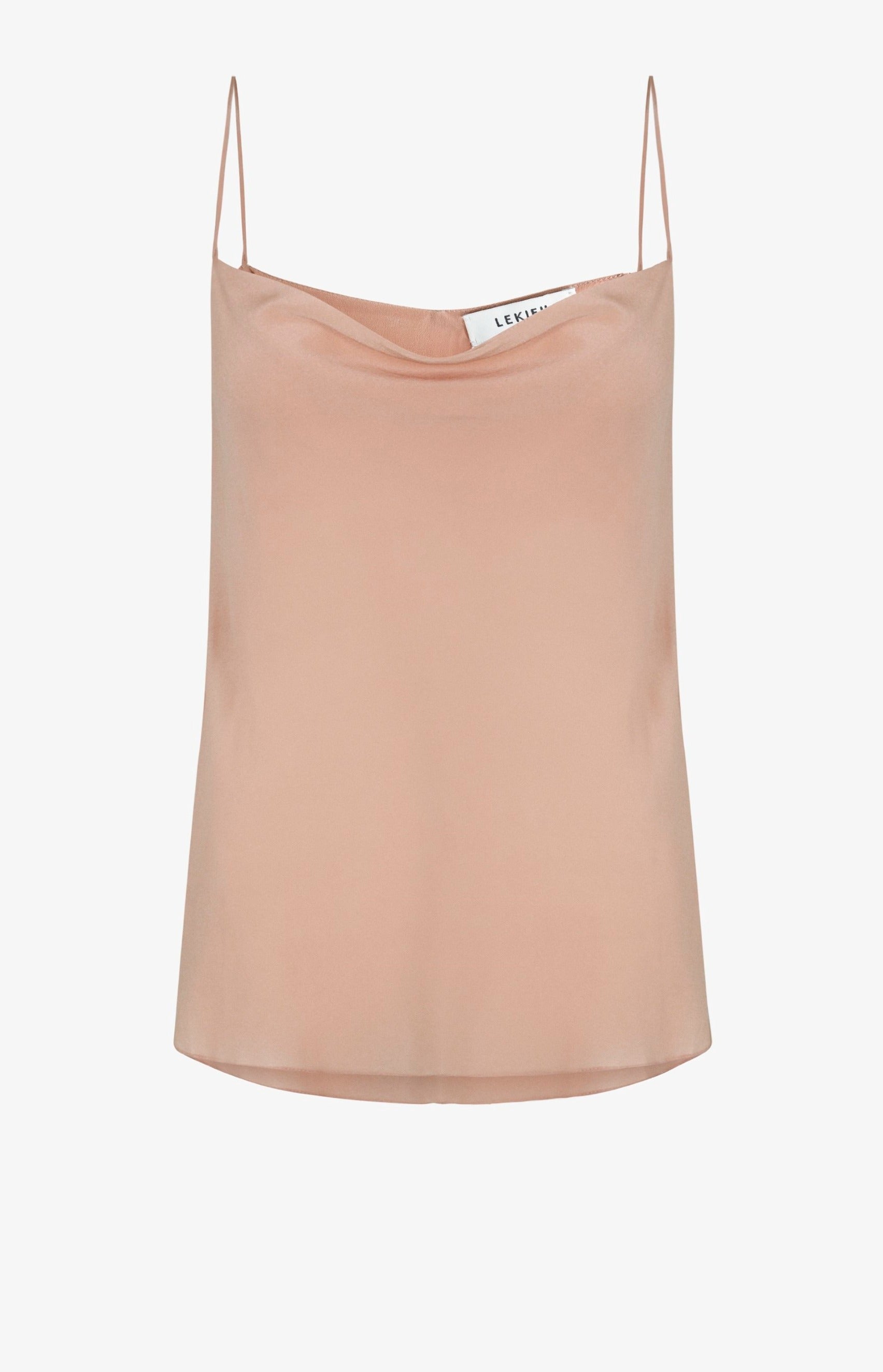 The camisole is sewn from 100% Sheer chiffon silk It features a cowl neck design with thin strap.
