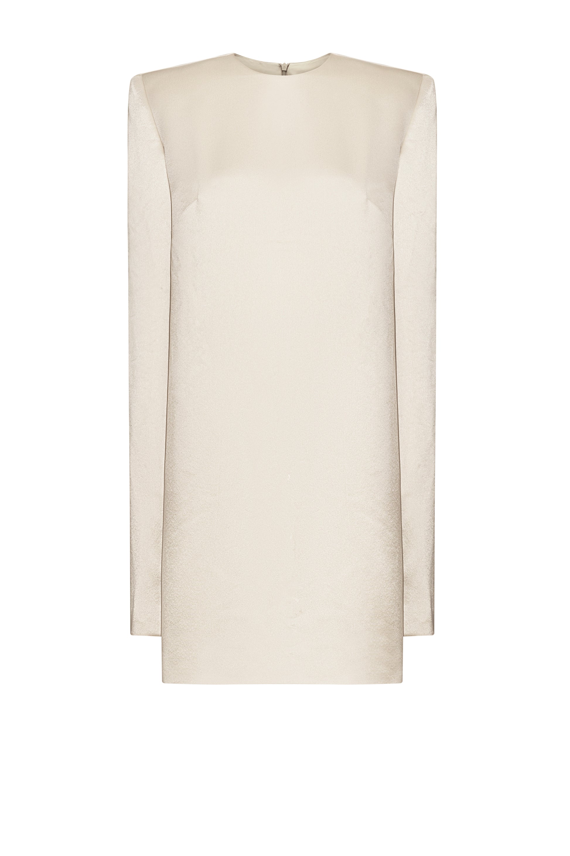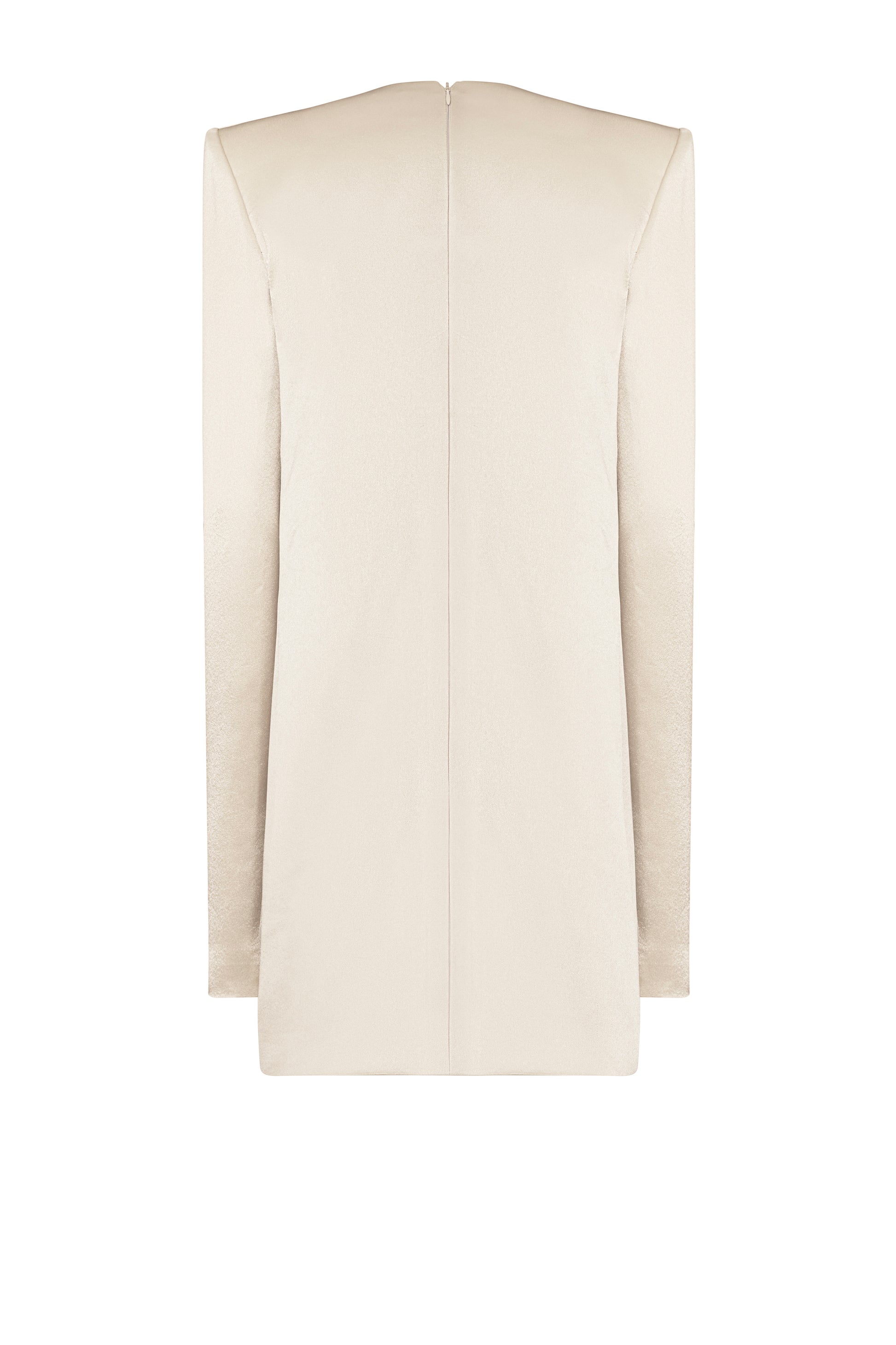 Long Sleeve dress with square padded shoulders and round neckline - Mini dress length - The cuffs are long enough to cover the fingers - Invisible zipper at the center back