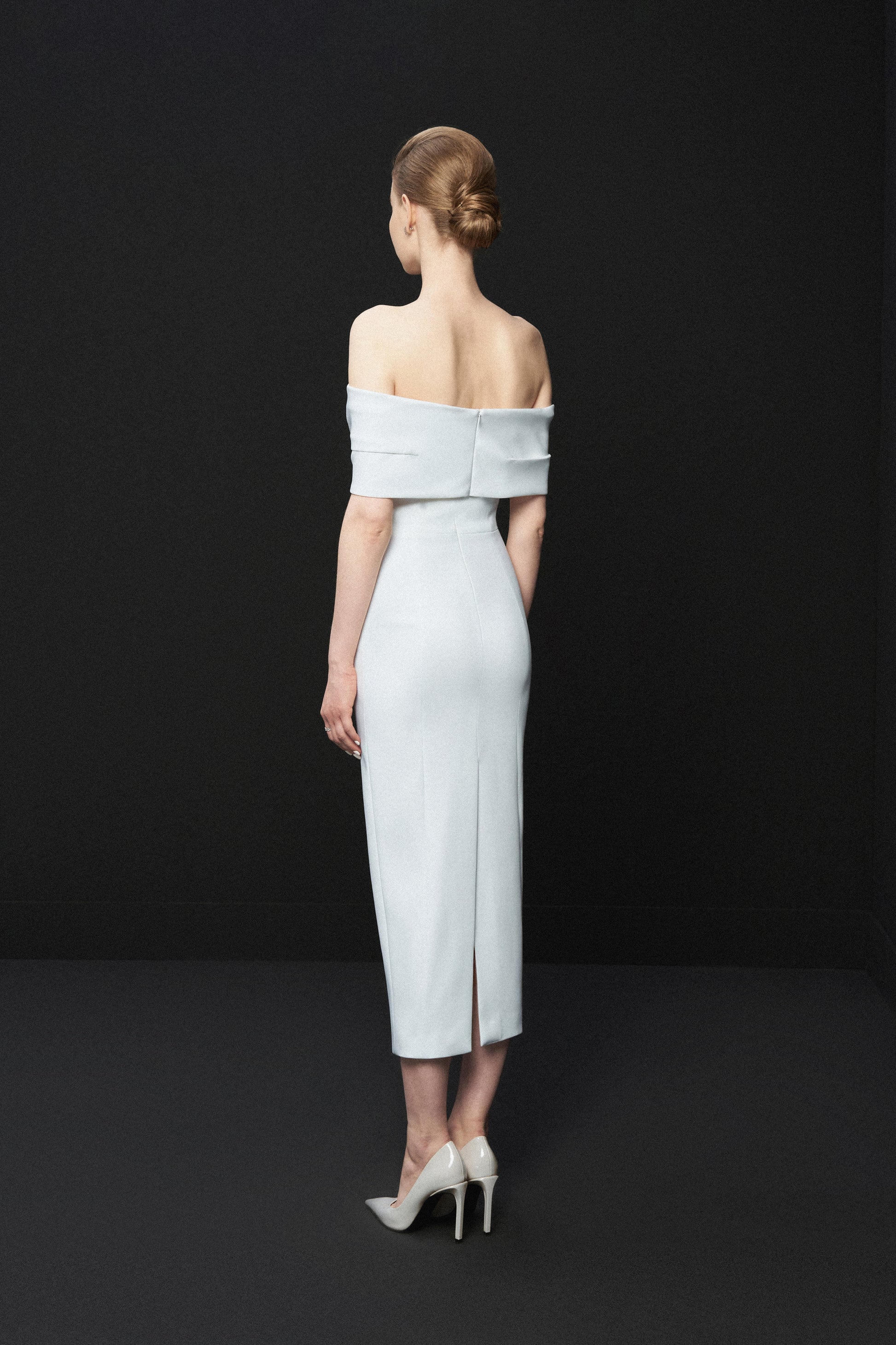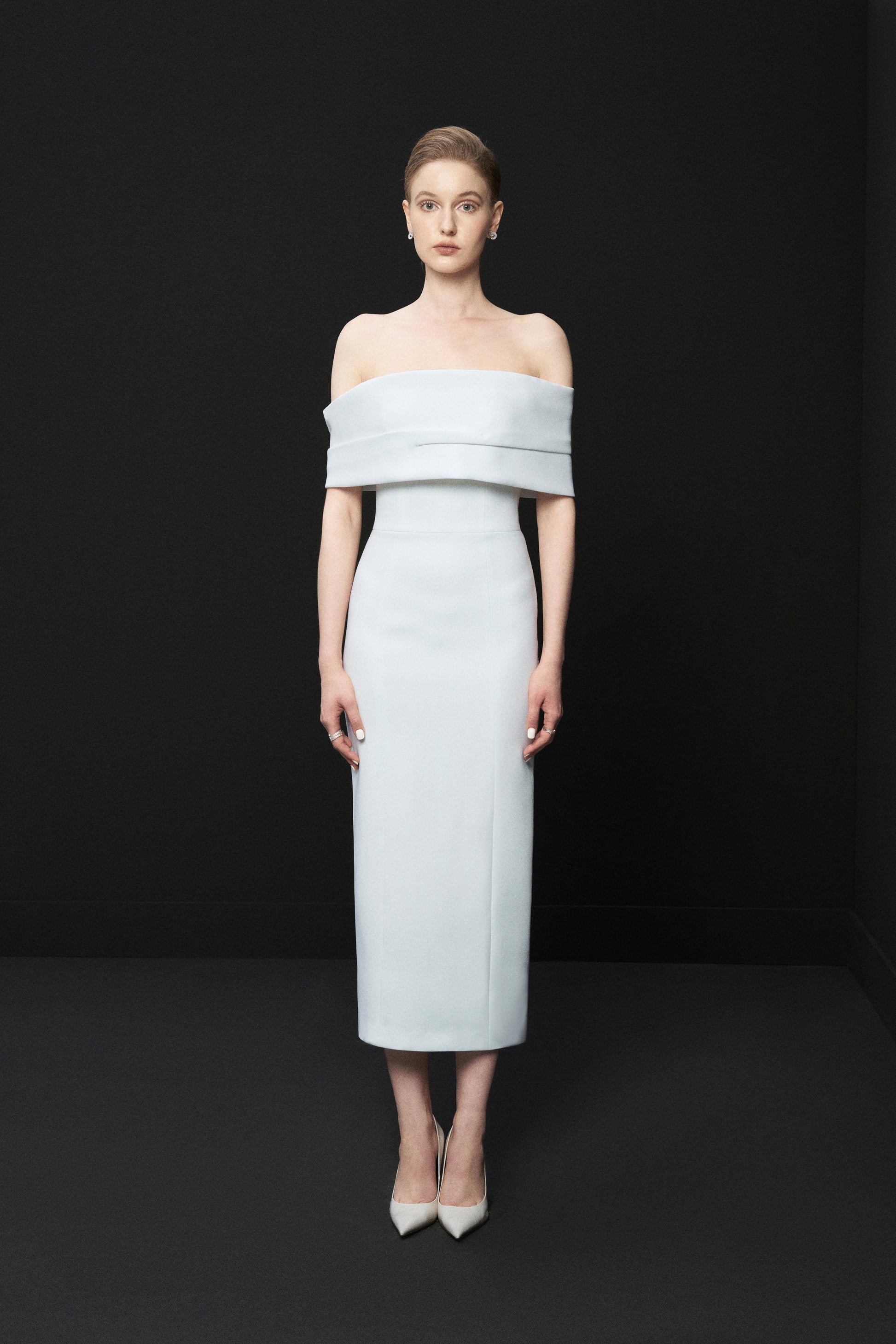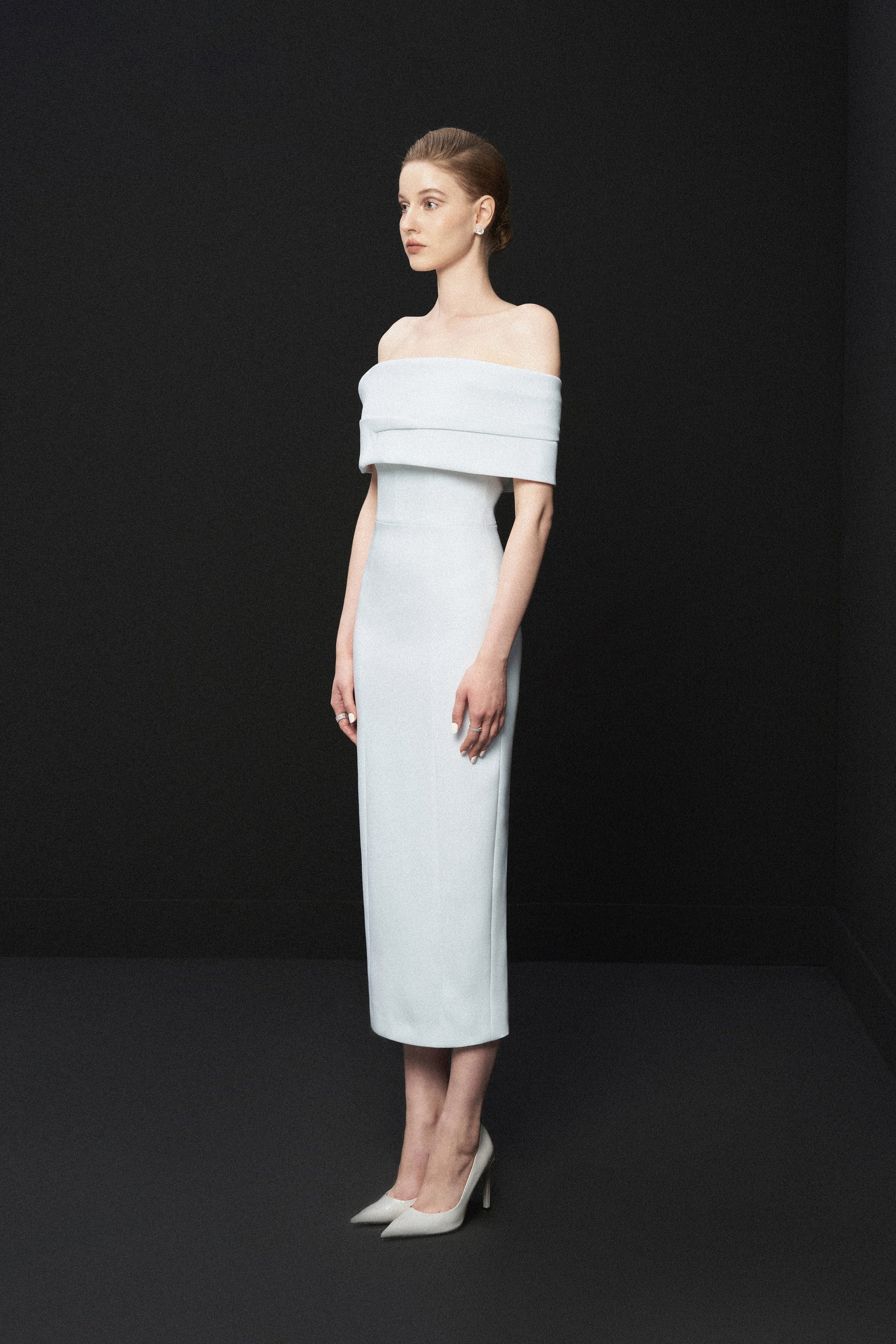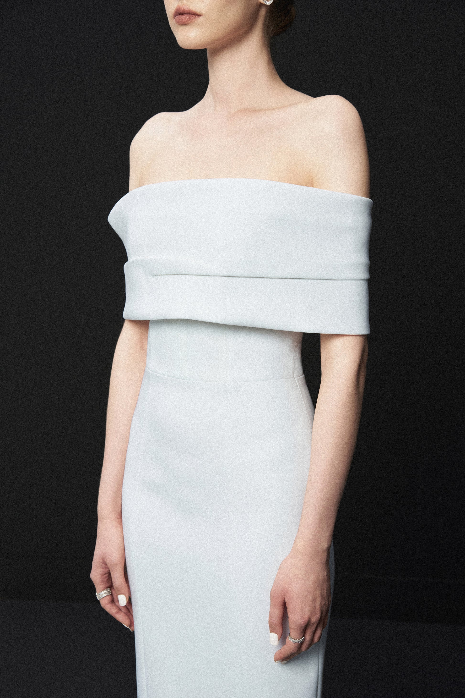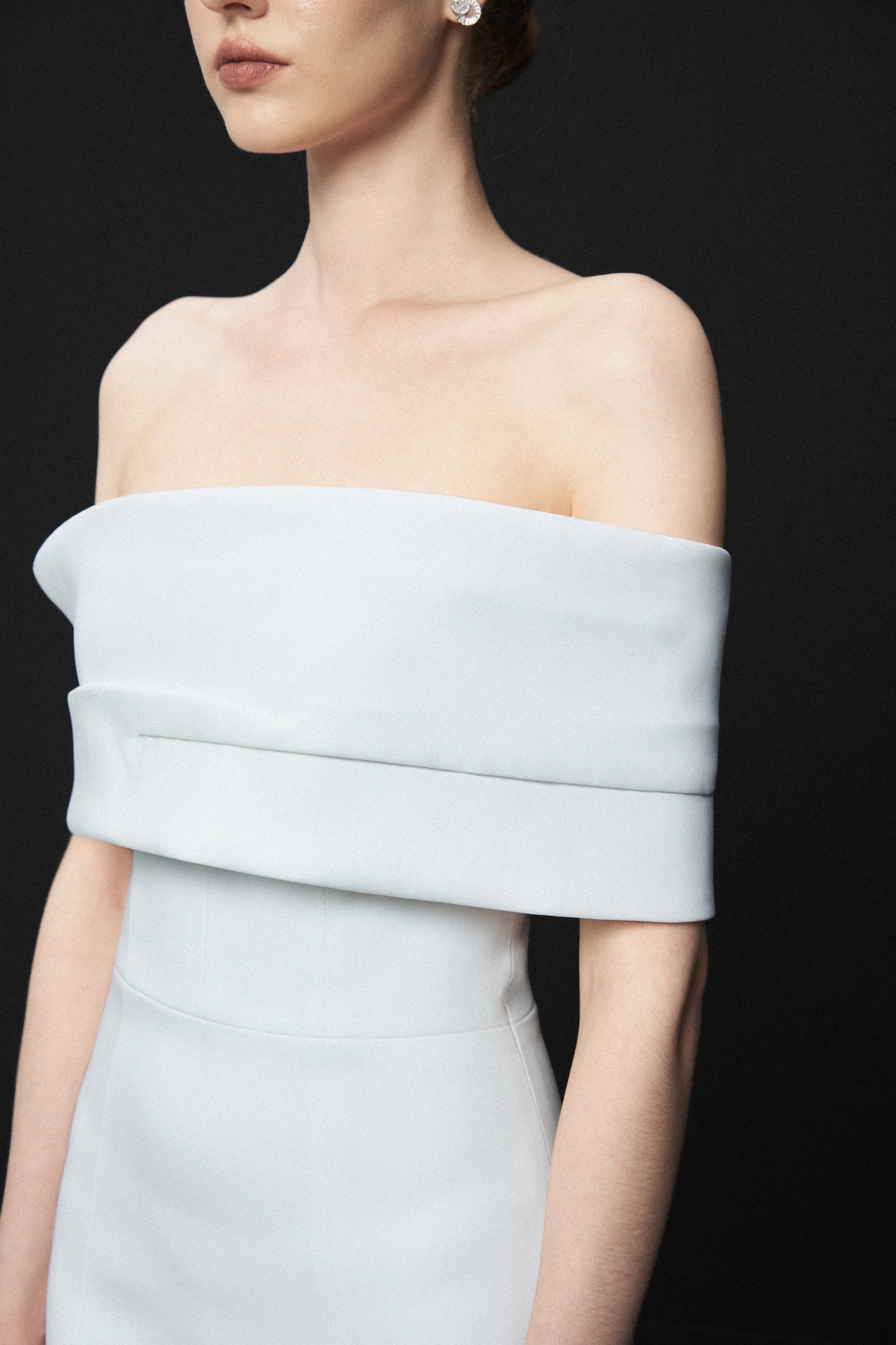 The dress proves its charm when transforming impressively on a classic white tone with a trendy off-shoulder design that will bring an irresistible attraction to the wearer. A special Japanese crepe is skillfully used to enhance the elegance of the item and make her confidence in any event.