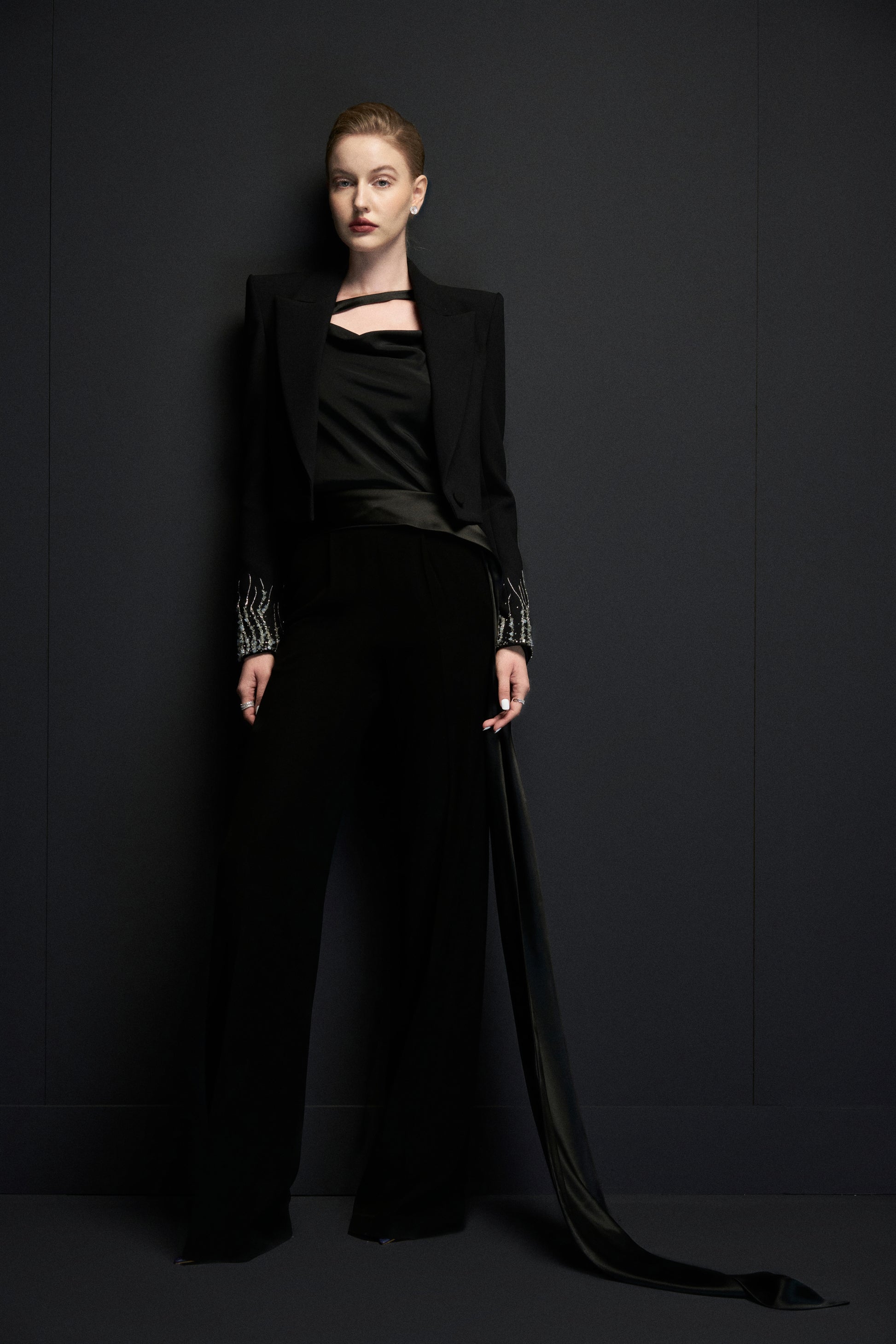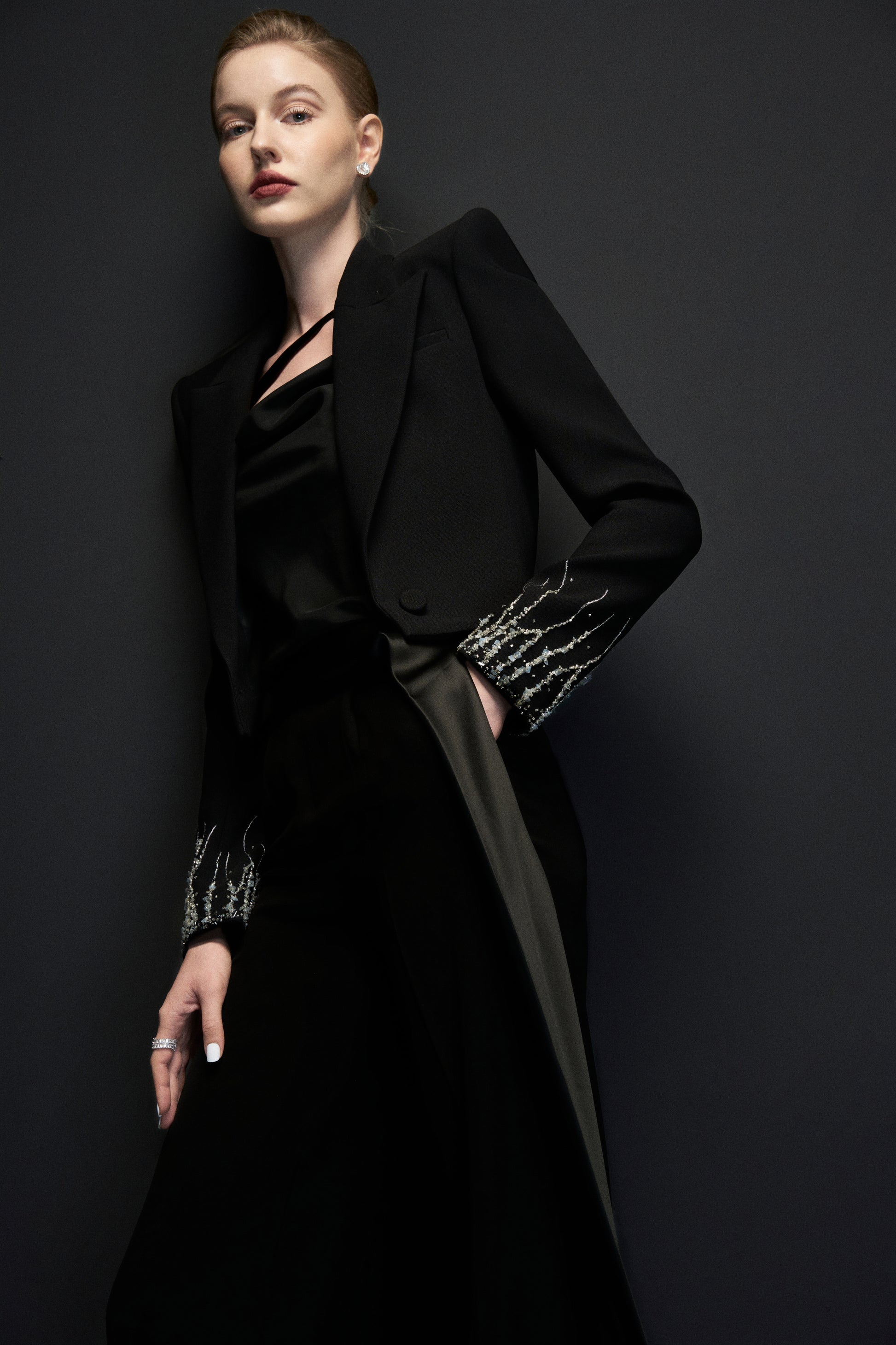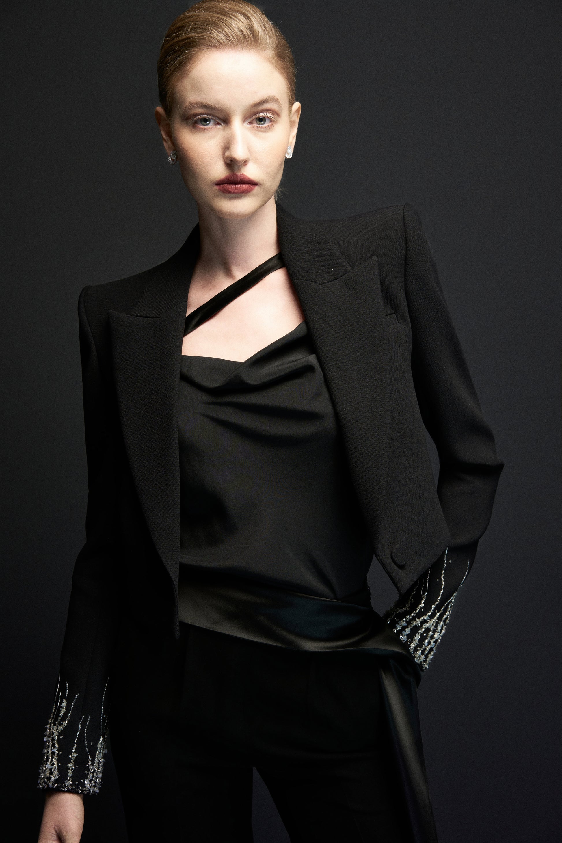 The top is impressive with a novelty diagonal strap that brings an upgrade to a simple shirt. A special Crepe de chine material also contributes to enhancing the softness of the costume and making it fancier.