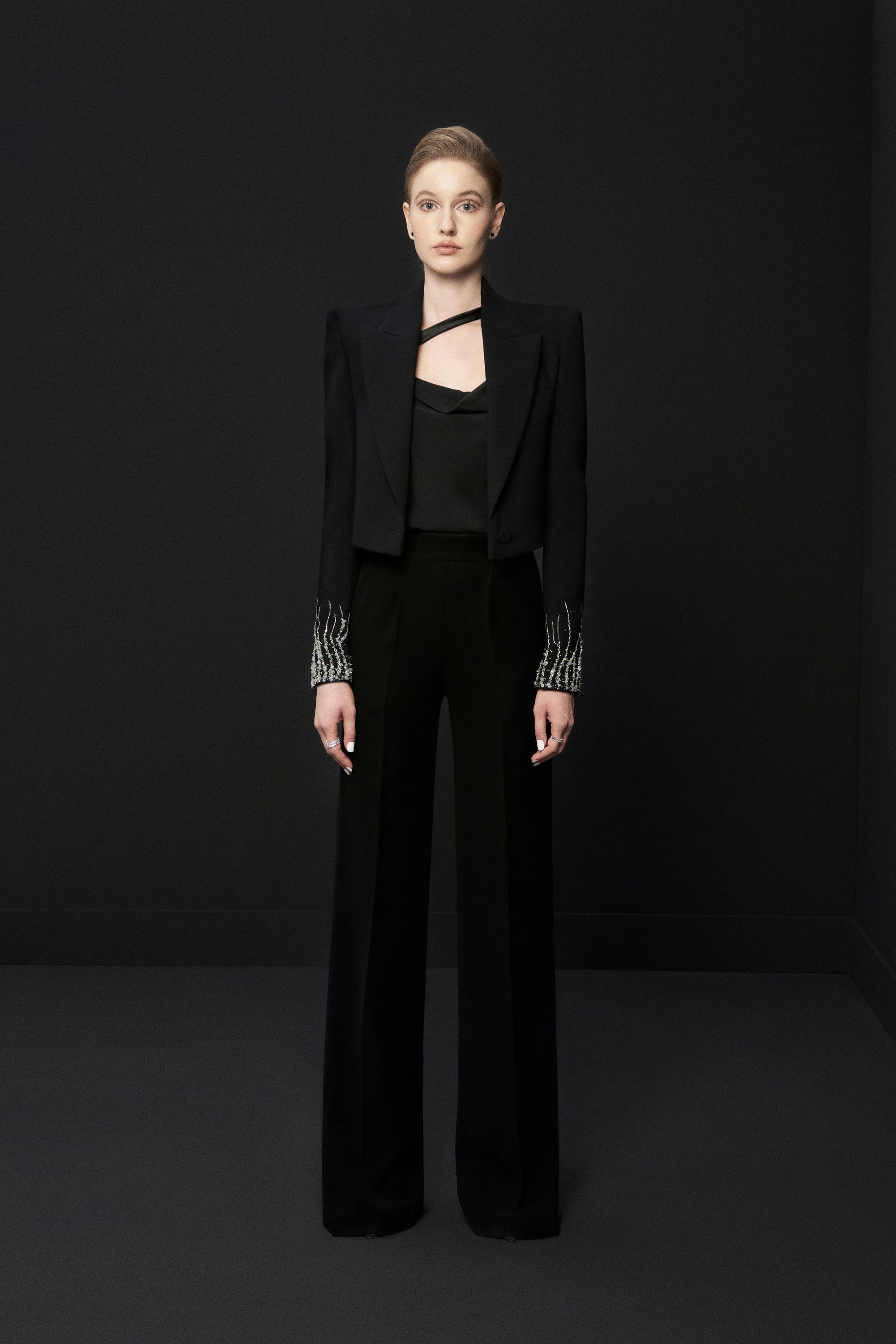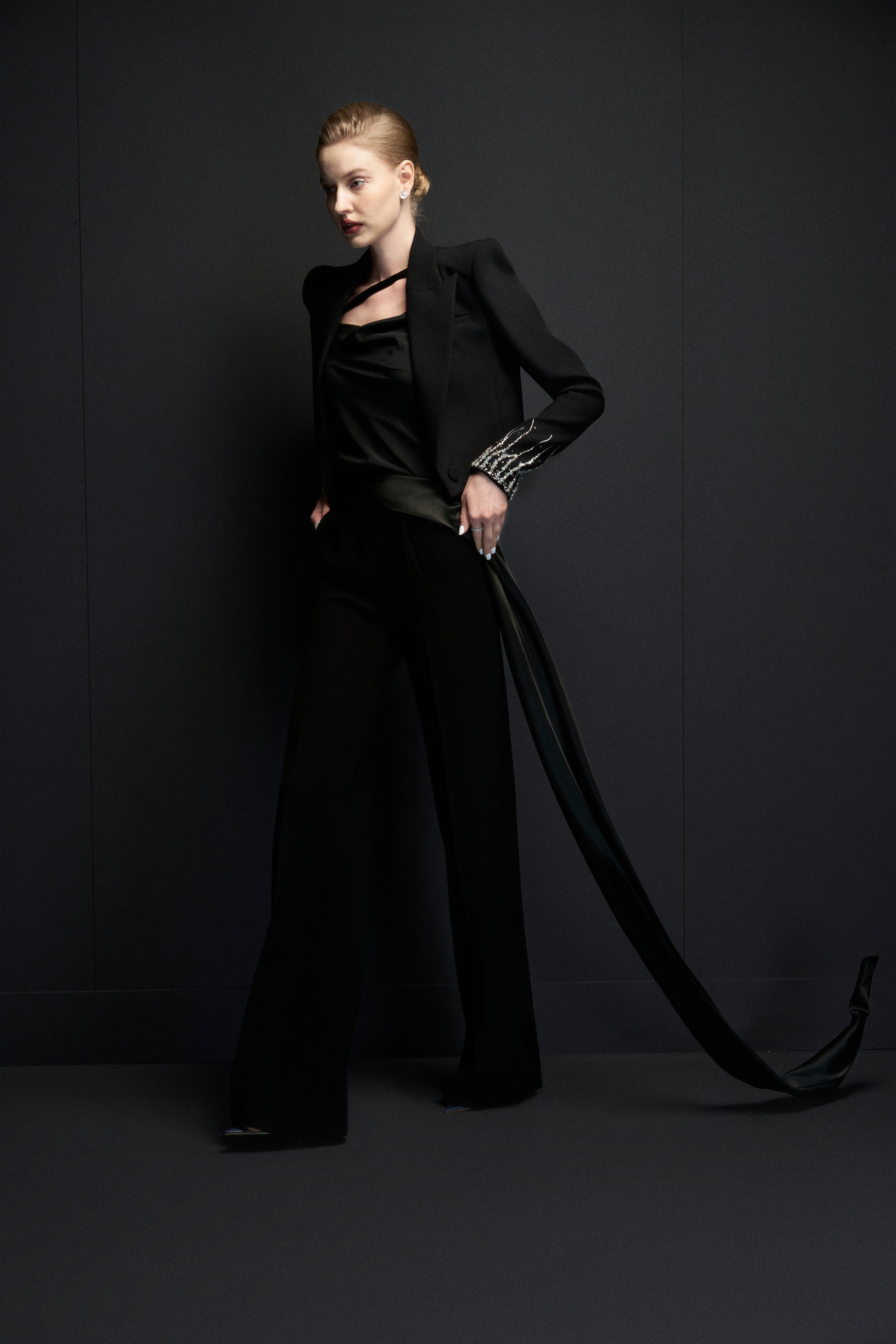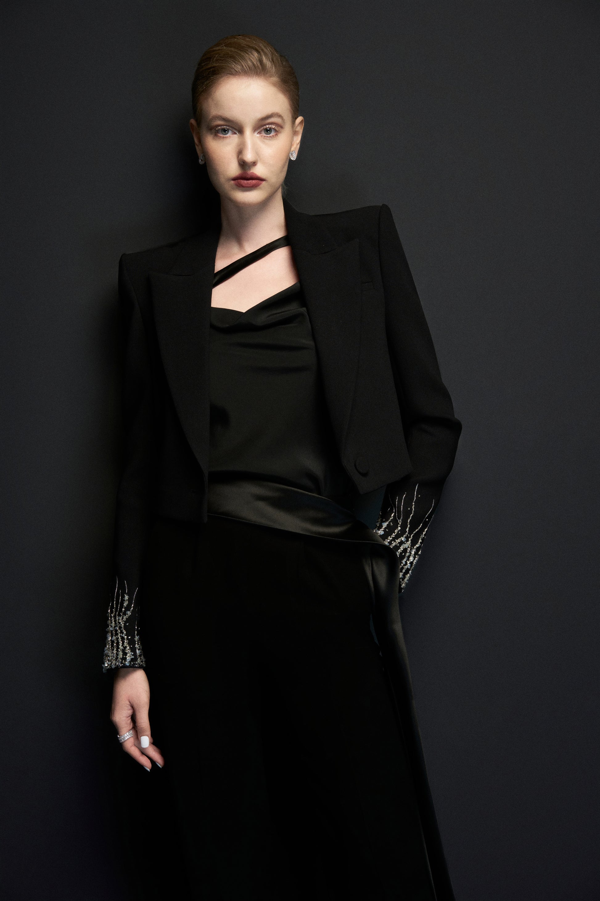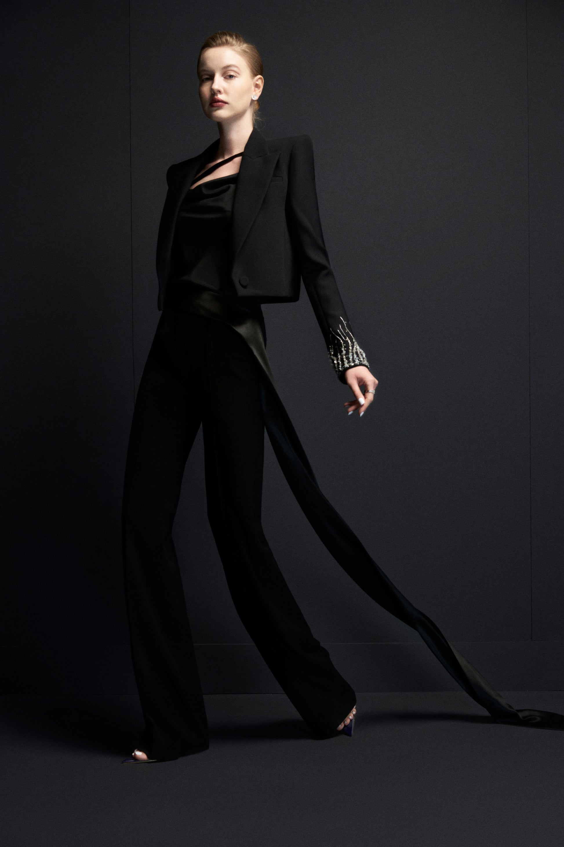 The top is impressive with a novelty diagonal strap that brings an upgrade to a simple shirt. A special Crepe de chine material also contributes to enhancing the softness of the costume and making it fancier.