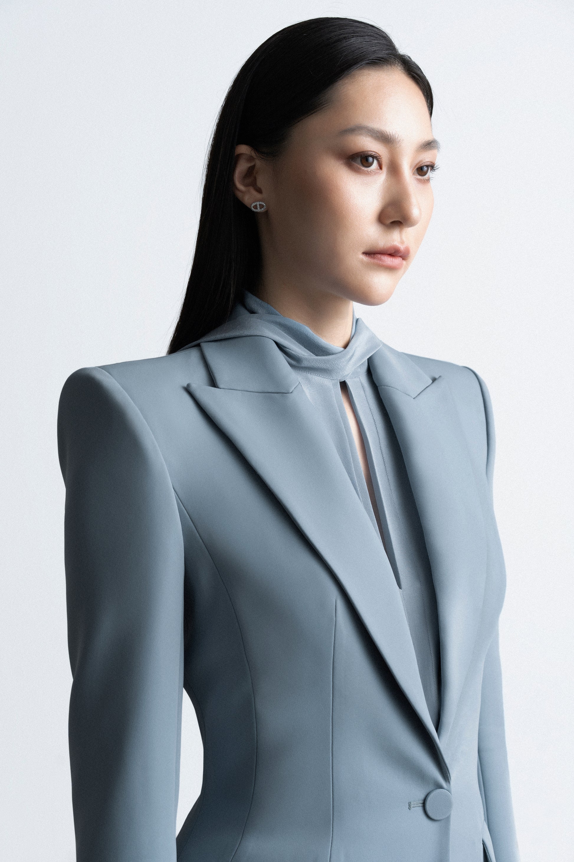 - Square scarf strip, measuring 5cm in width, running horizontally across the shoulders.