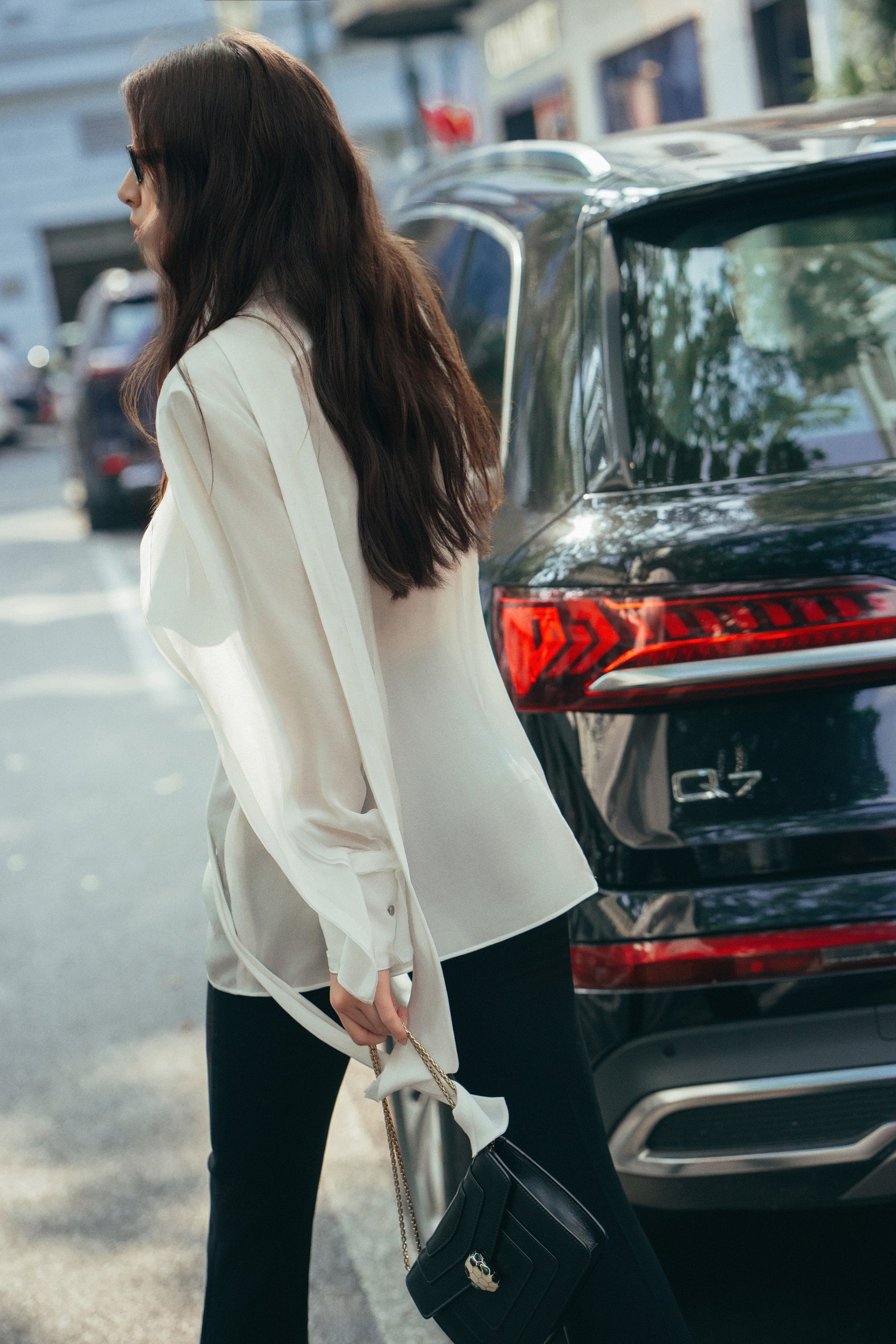 Martine Pants: Feminine Grace Meets Contemporary Flair The Martine Pants elevate the classic flared silhouette with a modern touch. Meticulously tailored from Marocain Crepe, this design offers a structured fit while maintaining a soft, feminine flow. The overall impression exudes a harmonious blend of strength and elegance, making it a versatile addition to the wardrobe of the modern, confident woman.