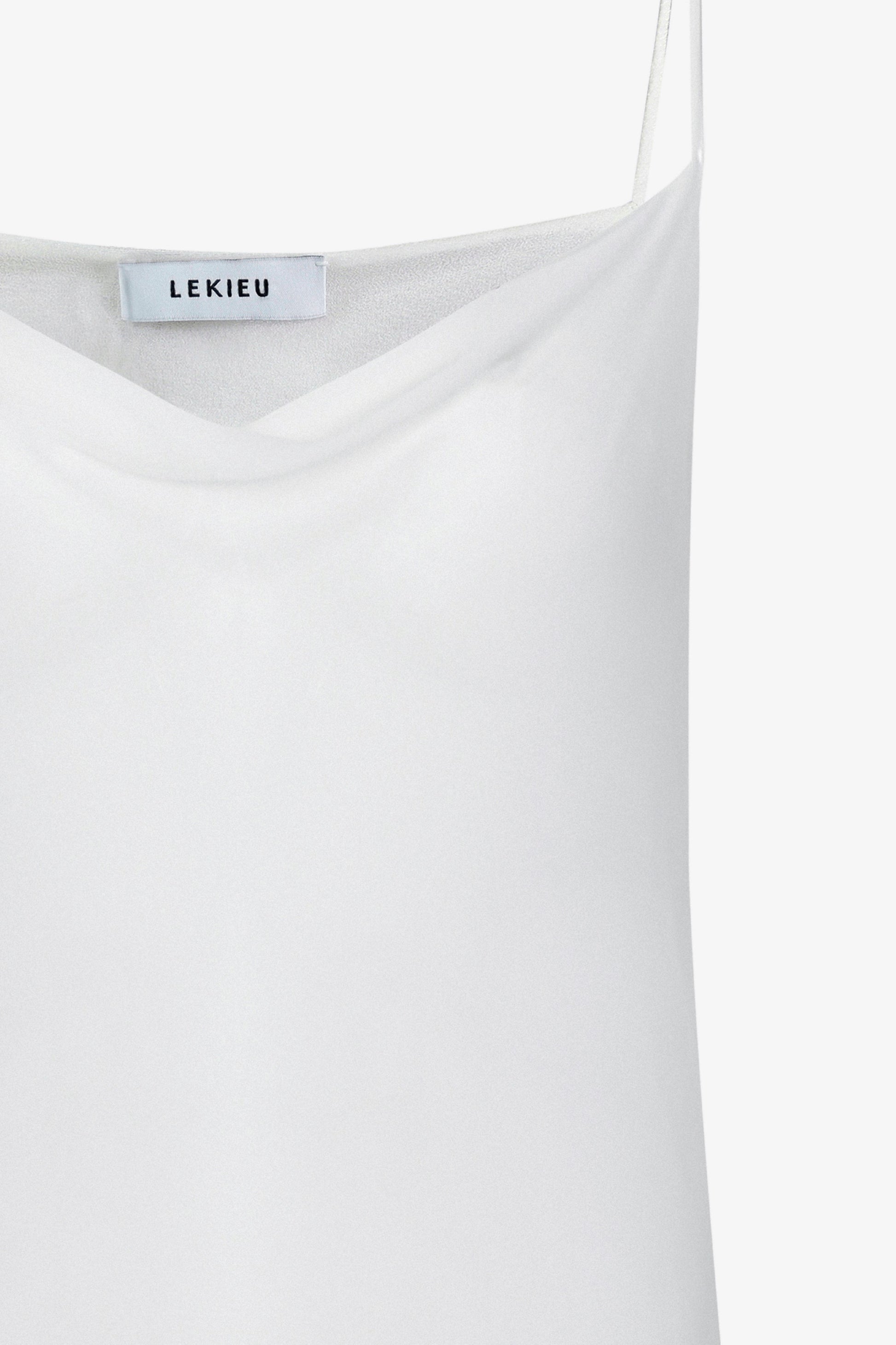The camisole is sewn from 100% Sheer chiffon silk It features a cowl neck design with thin strap.